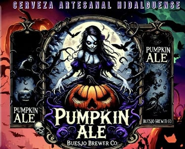 Bajo la siniestra luz de una luna llena 🌕, en lo profundo de los bosques malditos, ALE, una antigua hechicera, trabajaba incansablemente en su caldero. Con manos expertas, vertía agua cristalina robada de manantiales ocultos y maltas doradas recolectadas en tierras prohibidas 🌾. Los lúpulos embrujados, visibles solo en la oscuridad, se mezclaban con calabazas 🎃 cultivadas en campos abandonados. Pero el toque final era lo más peligroso: clavo, jengibre y pimienta, especias malditas que transformaban su mezcla en el elixir conocido como Pumpkin ALE.