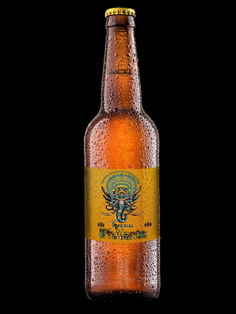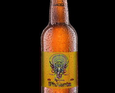 La etiqueta de la IPhAlante captura la esencia de esta poderosa conexión con un elefante imponente adornado con un penacho de plumas de indio, símbolo de sabiduría y respeto en muchas culturas nativas. En su trompa, el elefante sostiene un hacha, marcando el vigor y la tenacidad que esta cerveza propone al paladar.
